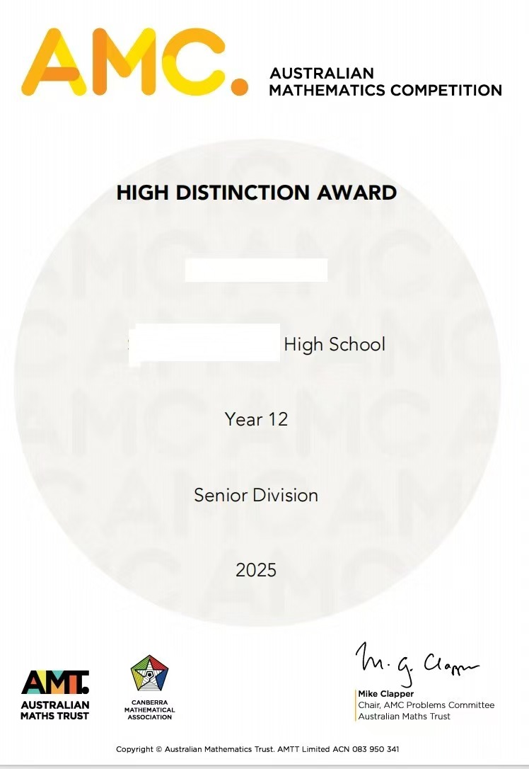 【竞赛】AMC HIGH DISTINCTION AWARD get!