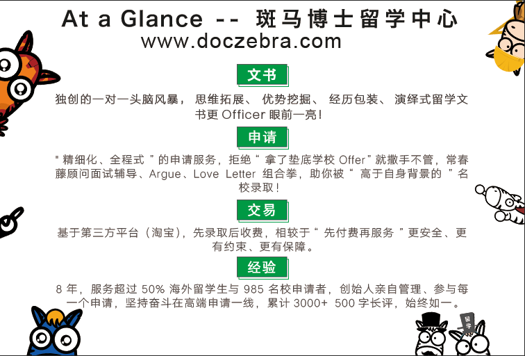 斑马博士留学中心 -- 8年来深受海内外名校申请者的青睐!“定制化" 助你被“高于自身背景”的名校录取!