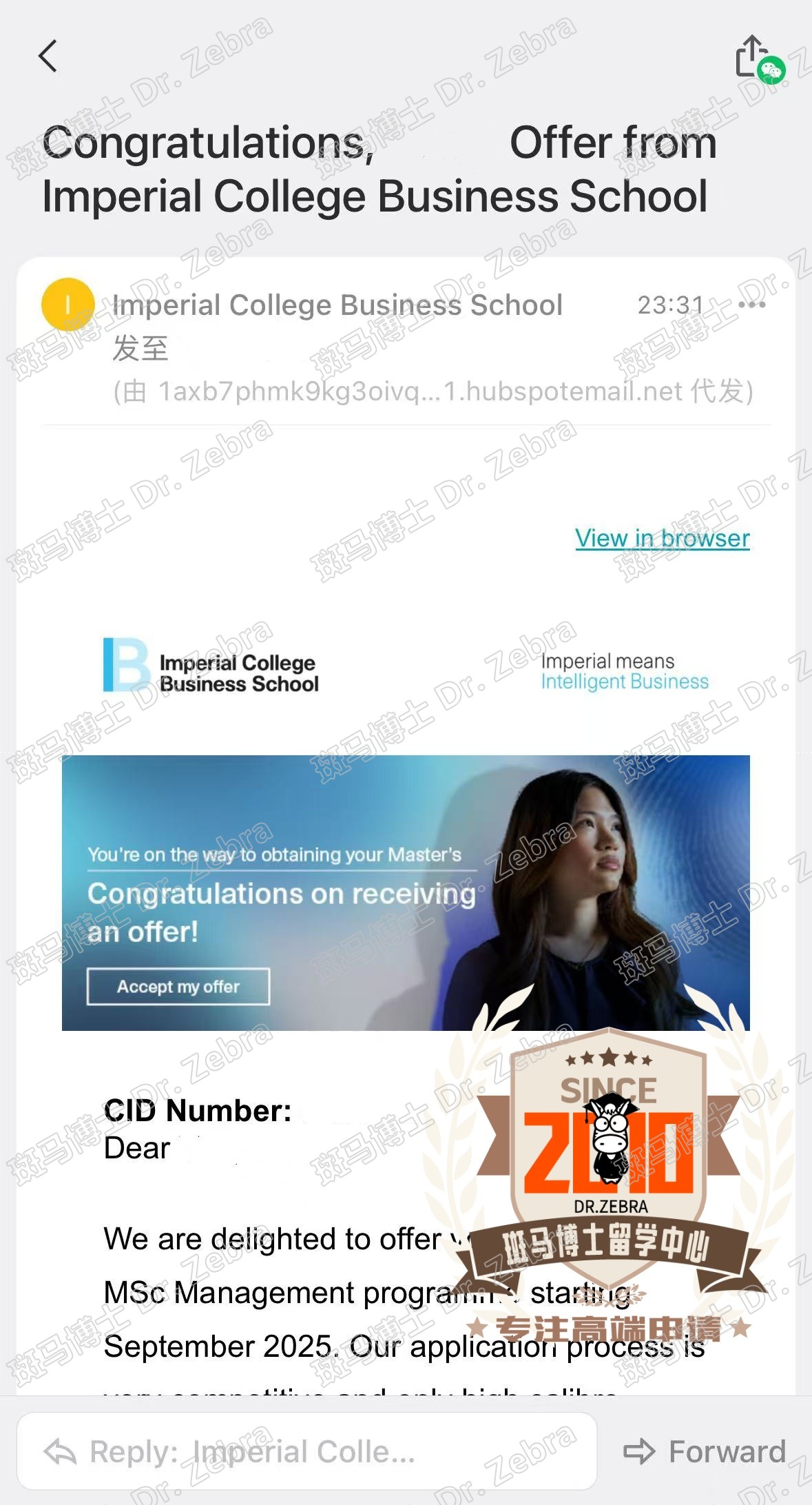 【斑马博士捷报】帝国理工学院Imperial College London(IC)MSc Management(MiM)管理硕士录取!