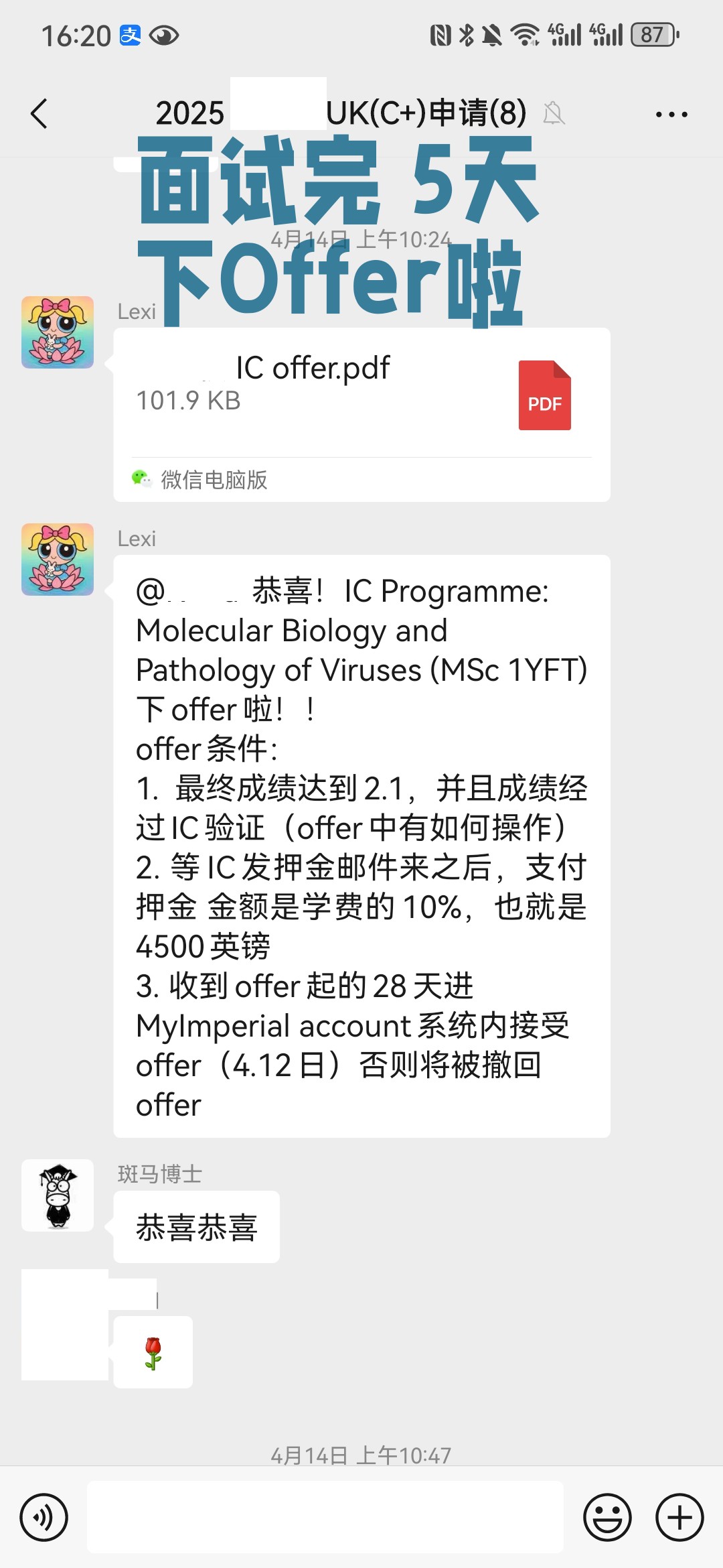 【斑马博士捷报】英本2.2,低于55逆袭获得帝国理工学院Imperial College London(IC)MSc Molecular Biology and Pathology of Viruses(MBPV)病毒分子生物学和病理学硕士录取!