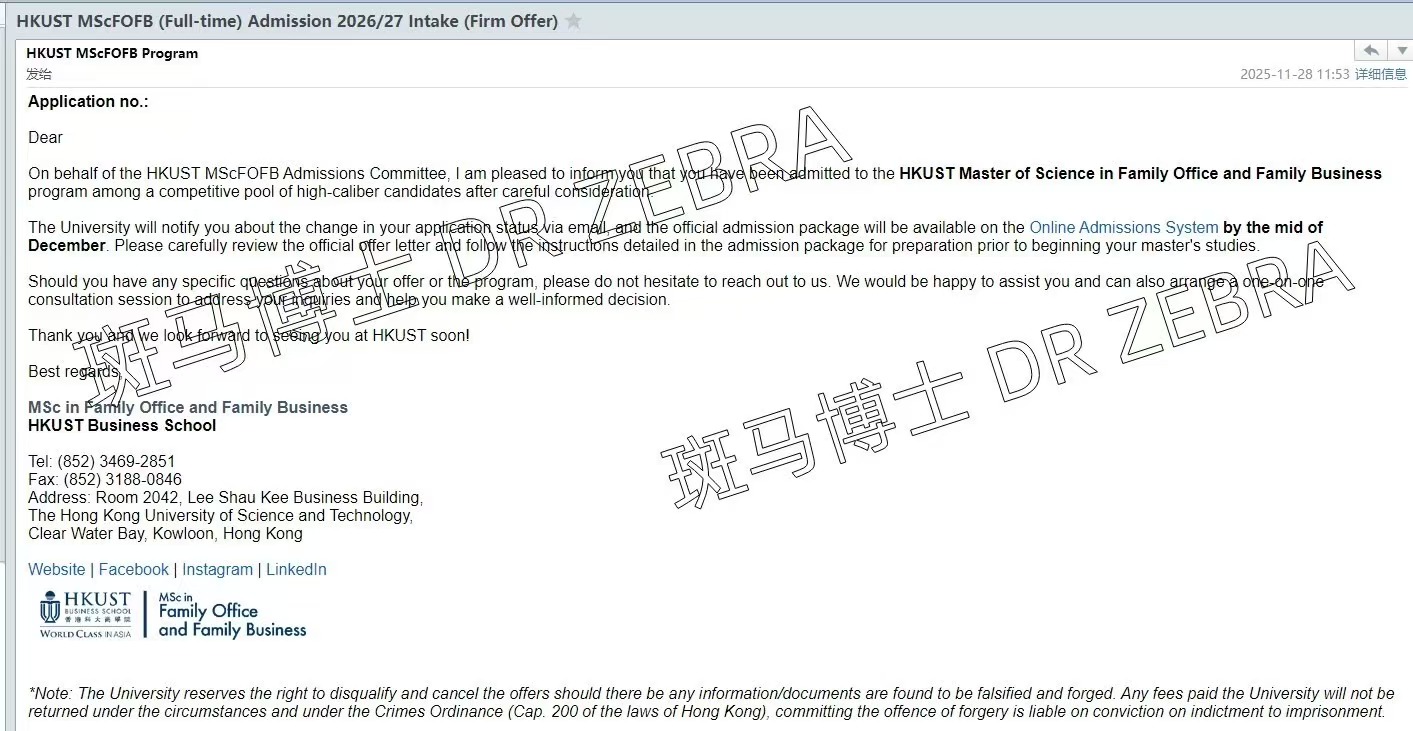 前阵子U叔发过一个#三家集团公司CEO学生对U叔文书的评价嘛,今天学生顺利拿到Dream School #HKUST#FOFB (Family Office and Family Business ) Offer啦~~